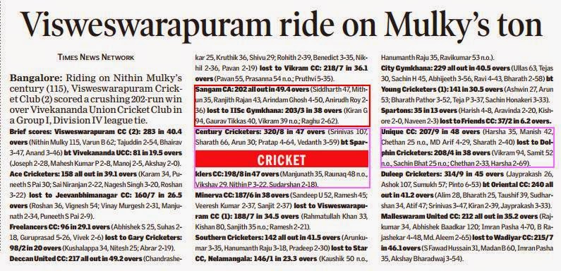 Mohammed 10.5-1-35-4, Girish 10-0-46-3, Adhkosh 10-0-35-1